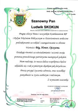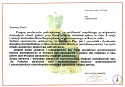 Pani Wanda Makuszewska jest członkiem Stowarzyszenia Kresowian w Dzierżoniowie. Urodziła się w Dzierżoniowie, ale jej rodzice pochodzili z Kresów Wschodnich II RP. W swojej relacji przekazuje niezwykle ciekawe historie, które przetrwały dzięki opowieściom jej ojca – Ludwika Skokuna.