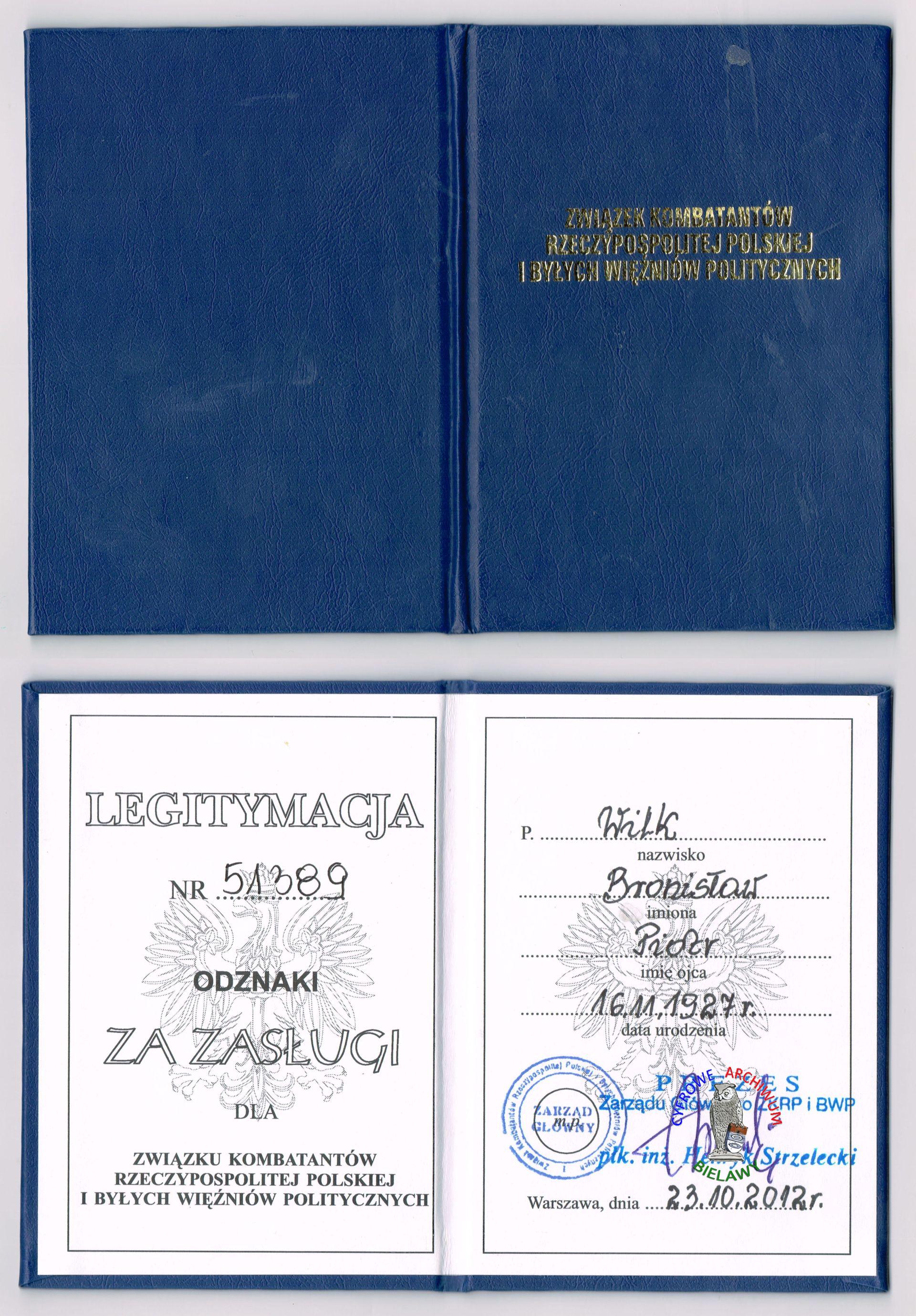 Urodził się w 1927 roku w rodzinie wielodzietnej, we wsi Długi Kąt (obecne województwo śląskie, powiat kłobucki, gmina Wręczyca Wielka). Jego ojciec, Piotr Wilk, był leśniczym, natomiast matka, Anna Wilk z domu Kmieć, zajmowała się domem i dziećmi. W roku 1942 Bronisław Wilk wstąpił do oddziału partyzanckiego Armii Krajowej (AK) pod dowództwem por. Józefa Janika. W roku 1944 z powodu przynależności do AK i udziału w akcji zbrojnej przeciwko gestapo został aresztowany we wsi Borowe. Osadzono go w Policyjnym Zastępczym Więzieniu w Mysłowicach, skąd trafił do obozu koncentracyjnego Mauthausen. Po wojnie ukończył Technikum Leśne w Szczecinku i został podleśniczym nadleśnictwie Przechlewo. W roku 1946 za przynależność do nielegalnej organizacji niepodległościowej AK i posiadanie broni został osadzony w Areszcie Śledczym Powiatowego Urzędu Bezpieczeństwa w Człuchowie, a następnie w zakładzie karnym w Chojnicach. Na wolność wyszedł w 1951 roku. Gdyby nie amnestia w więzieniu spędziłby trzynaście lat. Od 1952 roku swoje życie związał z Bielawą. W latach 1993–2016 pełnił funkcję prezesa zarządu Koła Miejskiego Związku Kombatantów Rzeczpospolitej Polskiej i Byłych Więźniów Politycznych (ZKRPiBWP) w Bielawie. Był Prezesem Honorowym ZKRPiBWP we Wrocławiu. W swoim dorobku posiadał między innymi: Krzyż Kawalerski Orderu Odrodzenia Polski, Krzyż Oświęcimski, Krzyż Armii Krajowej, Medal „Pro Memoria” oraz Kombatancki Krzyż Zwycięstwa. W roku 2018 Prezes Rady Ministrów, Mateusz Morawiecki, odznaczył Bronisława Wilka Medalem 100-lecia Odzyskania Niepodległości. Zmarł w 2023 roku.